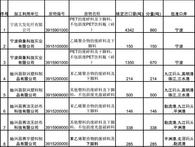最新廢塑料批文消息